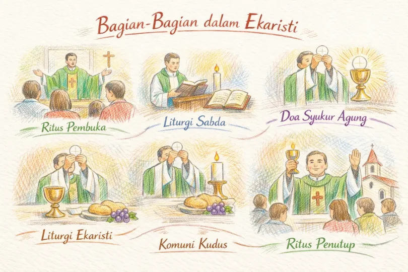 Berikut ini adalah makna bagian-bagian Misa Kudus pada hari Minggu: