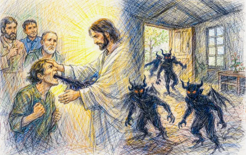 Namun bagian yang paling menarik adalah ketika Yesus berbicara tentang roh jahat yang keluar dari seseorang. Roh itu pergi mencari tempat lain, lalu kembali dan menemukan “rumah” itu kosong, bersih, dan rapi. Karena kosong, roh itu kembali dengan membawa roh-roh lain yang lebih jahat, sehingga keadaan orang itu menjadi lebih buruk dari sebelumnya.